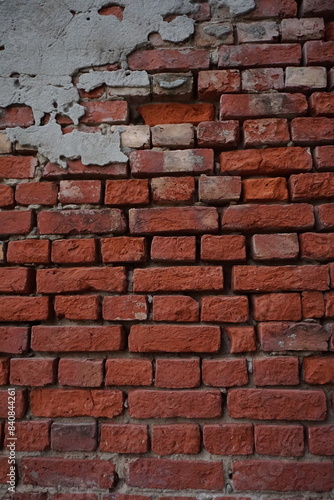 Obraz premium Abandoned rustic brick layered wall surface, Grungy red brick wall texture...