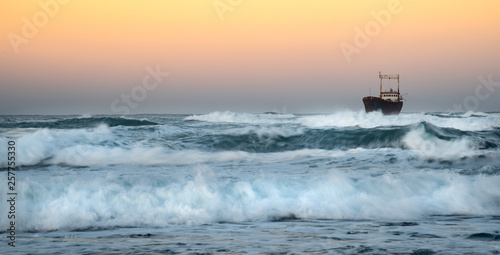 © Michalis Palis, Naklejka premium Abandoned ship in the stormy sea