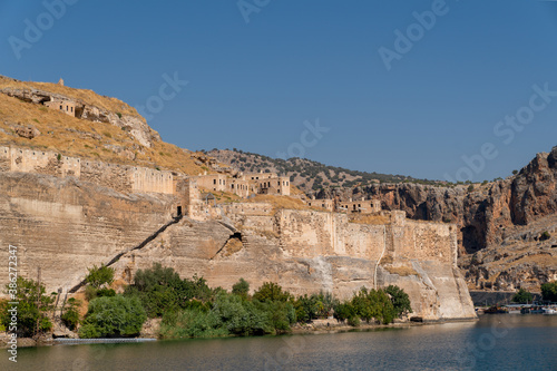 © Bilal, Fototapeta premium Abandoned stone houses on cliffs near the Euphrates River, Halfeti, Sanliurfa Province of Turkey