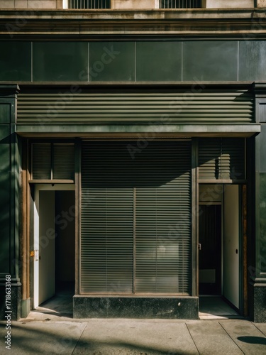 © udomsak, Fototapeta premium Abandoned storefront with closed sign on exterior wall facade