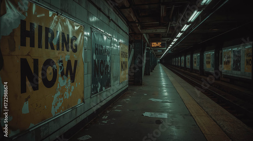 © SynthFrame Studio, Fototapeta premium Abandoned subway station with hiring signs