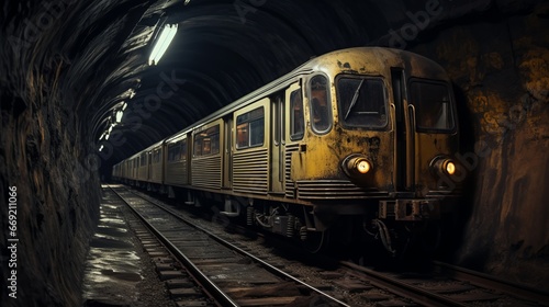 Fototapeta premium abandoned subway train in a tunnel section cut