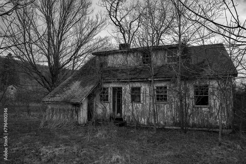 © Judy, Obraz premium Abandoned tenant house in the Delaware Water Gap National Recreation Area in black and white