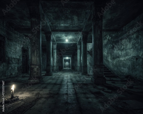 Obraz premium Abandoned Underground Corridor With Dim Light