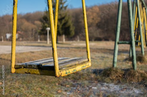 © tomkaphoto, Fototapeta premium Abandoned yellow swing