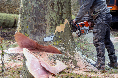 © morane, Obraz premium abatage d'arbre