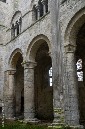 Fototapeta premium abbaye Saint Pierre de Jumièges, hiver dans la brume, fondée en 654, 76,...