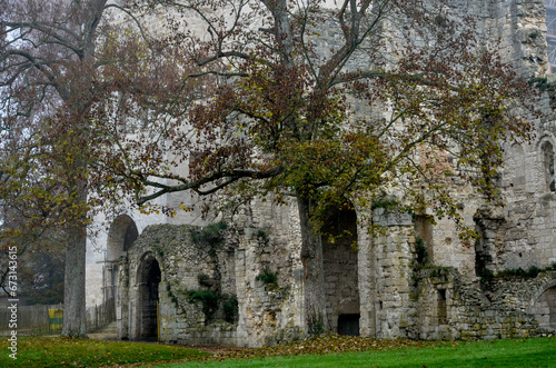 Fototapeta premium abbaye Saint Pierre de Jumièges, hiver dans la brume, fondée en 654, 76,...