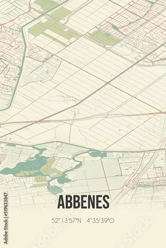 Obraz premium Abbenes, Noord-Holland, Schiphol region vintage street map. Retro Dutch city...