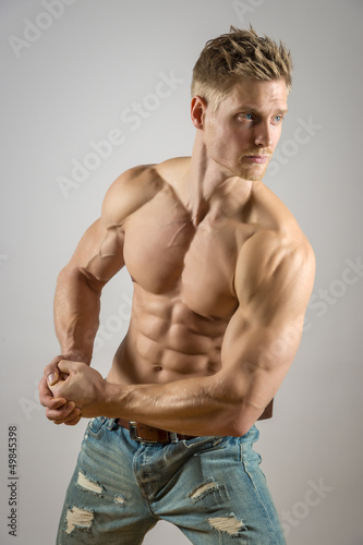 © Wolfgang Zwanzger, Fototapeta premium Abdominal muscle of blond athletic man