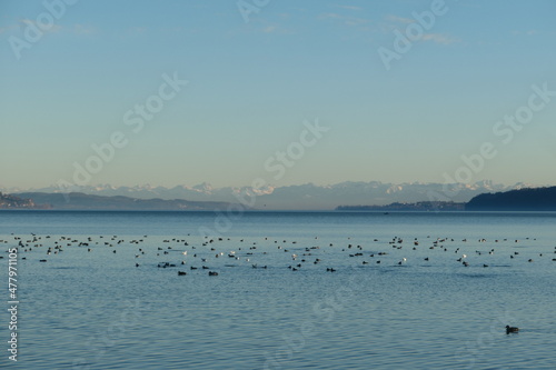 © michaelschoch, Naklejka premium Abendliche Winteridylle am Überlinger See