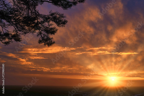 Fototapeta premium Abendrot Sonnenuntergang stark bewölter Himmel