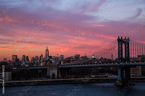 © lavizzara, Fototapeta premium Abendstimmung an der Manhattan Bridge