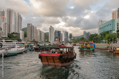 © kingrobert, Fototapeta premium Aberdeen Harbour seen from Ap Lei Chau Bridge, In this area you will find fishing boats, houseboats, and sampans, The bay between the south coast of Hong Kong Island