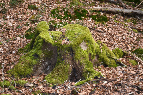 © photosnic, Fototapeta premium Abgesägter Baumstamm mit grünem Moos