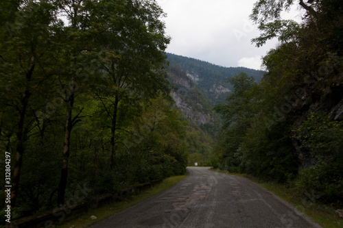 © Анастасия Жарова, Fototapeta premium Abkhazia. Jeep trip to the mountains. The Gega waterfall, lake Riza