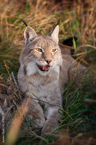 Obraz premium Abordable Eurasian Lynx, portret w jesiennym polu