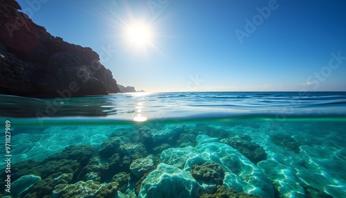Fototapeta premium Above and Below the Surface of the Ocean