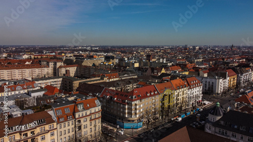© 4kclips, Fototapeta premium Above the rooftops of Berlin - urban photography