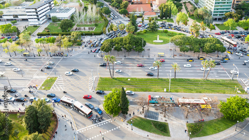 © vvoe, Fototapeta premium above view car traffic on square in evening
