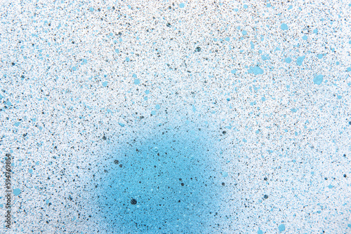 © Kamran, Fototapeta premium above view white surface with blue paints and dark spots painting artist horizontal dust art