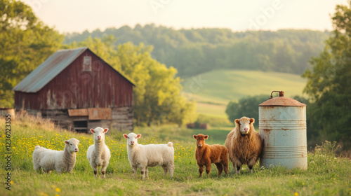 Obraz premium Abreuvoir, A vibrant summer scene featuring farm animals, highlighting the...