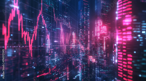 Fototapeta premium Abstack background, price drop, holographic stock market crash, futuristic business decline, digital financial crisis.