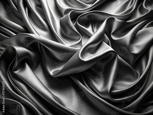 © DigitalArt Max, Obraz premium Abstract aerial art: flowing black and white fabric captured by drone, smooth texture.