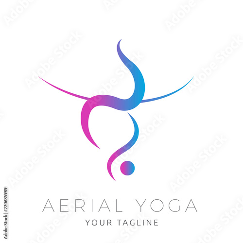 Fototapeta premium Abstract Aerial Yoga Silhouette Vector Logo