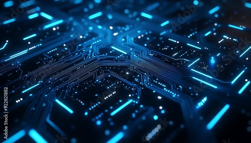 © AhmadTriwahyuutomo, Obraz premium Abstract AI Visualization as a Glowing Circuit Board, Complex Patterns and Connections in Dark Digital Space