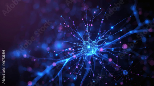 Fototapeta premium Abstract AI Visualization of a Luminous Neuron and Neural Network - A...