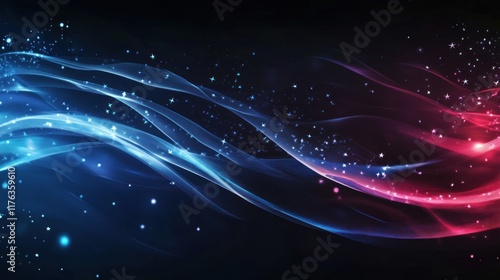 Fototapeta premium Abstract American flag with flowing stars and stripes, featuring a blank...