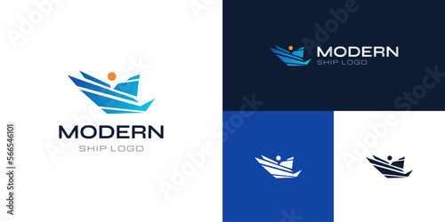 Obraz premium Abstract and Modern Ship Logo Design in Blue Gradient Style. Cruise, Yacht...