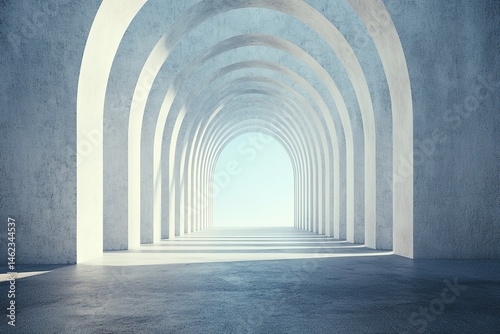 Fototapeta premium Abstract Architectural Corridor With Light Gray Arches
