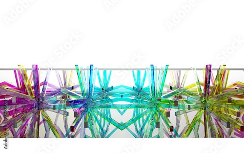 Fototapeta premium abstract architectural interior with gradient geometric glass sculpture with white lines. 3D illustration and rendering