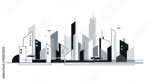 Obraz premium Abstract architectural rendering with geometric building shapes and white...
