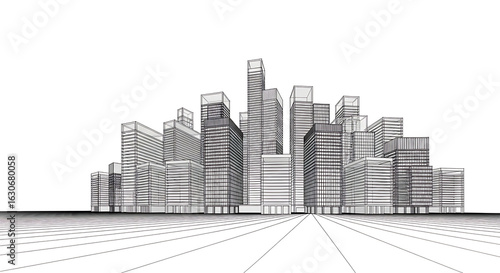 Fototapeta premium Abstract architectural sketch of a modern city skyline with a perspective...