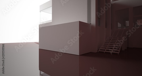 Fototapeta premium Abstract architectural white and brown gloss interior of a minimalist house...