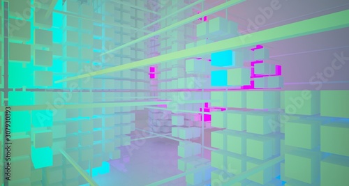 Fototapeta premium Abstract architectural white interior from array cubes with color gradient...