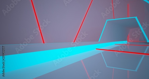 Fototapeta premium Abstract architectural white interior of a minimalist house with color...