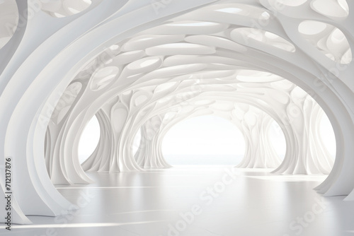 © Slanapotam, Naklejka premium Abstract architecture background, futuristic white arched interior 3d render