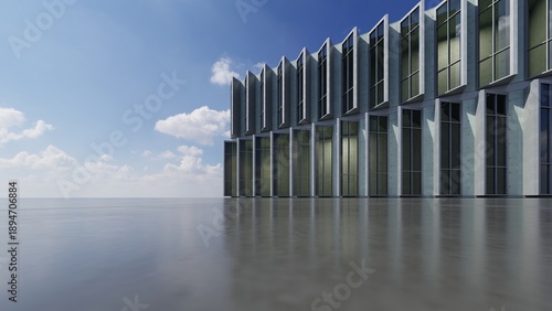 © nuchao, Obraz premium Abstract architecture background, White Concrete Wall And Windows Pattern on empty concrete floor, Modern Exterior Entrance, Scene for car presentation, 3D rendering