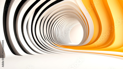 © Cherstva, Obraz premium Abstract architecture forming a tunnel with orange and white stripes
