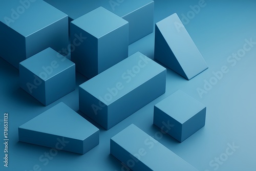 © Mostakim72, Obraz premium Abstract arrangement of blue geometric shapes and blocks
