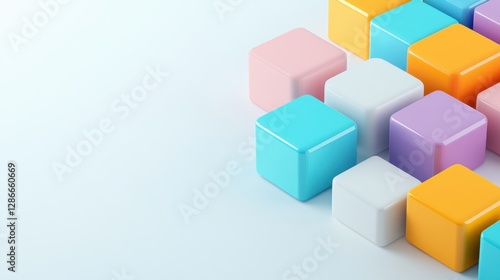 Fototapeta premium Abstract arrangement of colorful cubes on a bright surface, perfect for graphic design and modern background