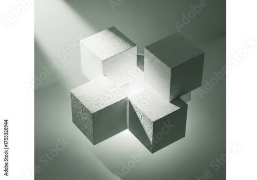 Obraz premium Abstract arrangement of four cubes forming a cross shape with light