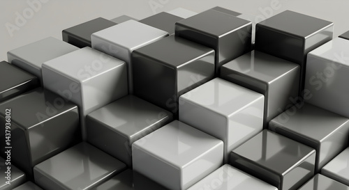 Fototapeta premium Abstract Arrangement Of Glossy Cubes In Shades Of Gray