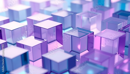 © Oxsvge, Obraz premium Abstract Arrangement of Translucent Blue and Purple Cubes