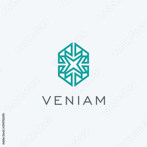 © side, Obraz premium Abstract arrow with hexagon shape logo design icon vector template