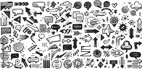 Fototapeta premium Abstract arrows and Speech bubbles set. Various doodle arrows and speech...